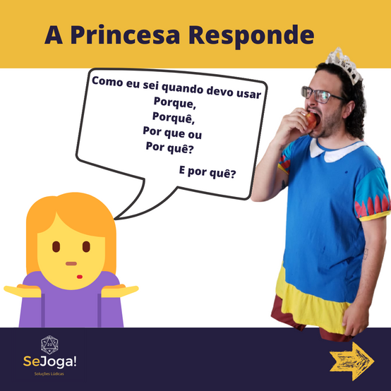Curiosidade: Em inglês só existem duas palavras, uma para "por que", "why" usamos para perguntar e uma "porque", "because" usamos para responder!